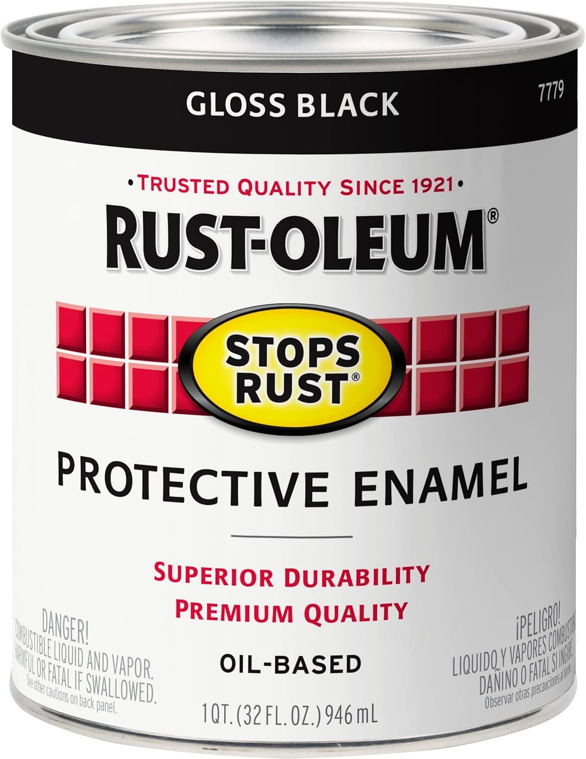 Rust-Oleum 7779502 Stops Rust Brush On Paint, Quart, Gloss Black, 32 Fl Oz (Pack of 1)